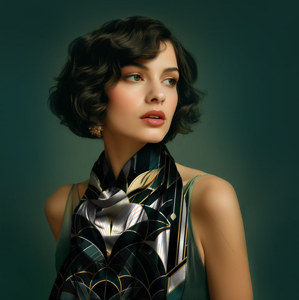 Step into the world of timeless elegance with our Jewels of Art Deco Silk Scarves Collection, where luxury meets versatility in a symphony of design. Each scarf in our collection is more than an accessory—it's a statement, a work of art that gracefully complements any ensemble with a polished, sophisticated flair.